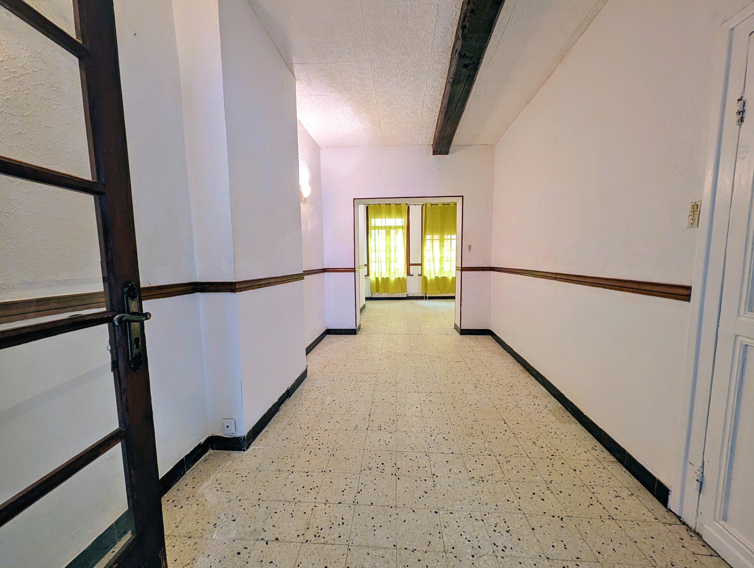 Au rez de chaussée un salon-séjour, une cuisine donnant sur une petite cour. Toilettes séparées.